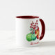 Relájese en esta taza de café festiva con un ilustracion acuarela de adornos verdes, bayas rojas, dulces y un regalo envuelto en oro. Con los colores clásicos de los Navidades y el encanto pintado a mano, es la taza perfecta para tomar cacao o regalar a los amantes de las vacaciones que disfrutan de alegres diseños de temporada.