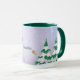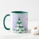 Disfruta de tu café o chocolate caliente cada Navidad y la temporada de invierno con mi lindo par de pájaros cardinales volando para saludarse entre árboles verdes cubiertos de nieve contra un cielo de invierno azul y lavanda lleno de copos de nieve cayendo. Personalízalo con la plantilla de nombre provista entre el par cardinal, personalizar aún más al tener uno de los cardenales aterrizar en tu nombre :) ¡Saludos de temporada!