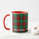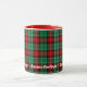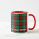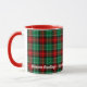 Añade tu saludo favorito, o nombre a este tazón de café editable con letras blancas a lo largo de la parte inferior, y un tazón de café retro rojo y verde Navidades de vacaciones trenzado patrón de café.