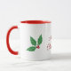 Una taza de Navidad con holly y sus bayas rojas, un texto de personalizable "Feliz Navidad". Para dar un regalo, para beber tu café en la oficina o un chocolate caliente en casa, esta taza establecerá el ánimo.