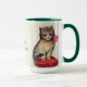 Este diseño presenta una imagen vintage de un gatito sentado sobre una almohada roja y con un arco rojo.