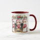 Adorables Navidades personalizados atracan a Mimi de sus nietos. Esta linda taza de Navidades personalizados rojas y blancas de dos tonos muestra a dos niños pequeños, y una niña pequeña, todos en medias Navidades, con el mensaje editable We Love You, Mimi!, seguido de los nombres de los niños. Todo el texto de esta taza especial de vacaciones de Mimi keepsake es personalizable, incluyendo color, tipo de letra, tamaño de texto y posición. Simplemente edite el texto y dé este regalo memorable a los miembros de la familia, amigos, cuidadores y profesores. De 369MyName. Incluye algo de contenido creativo.