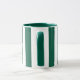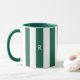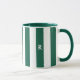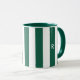 Este tazón de café festivo incluye rayas verdes Navidades con tu monograma inicial en tipografía blanca para que puedas personalizar. Diseñado por el artista de renombre mundial ©Tim Coffey.