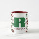 Un regalo super lindo y divertido de amante de los perros con tazas de perro manchadas de perro de cuadros rojos, verdes, negros y blancos con marcos de Relieve metalizado dorado. Agregue su propio nombre e inicial editando la plantilla de texto. La idea de regalo única y festiva perfecta para las vacaciones de los Navidades.