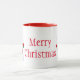 El tazón de café/té de cerámica/cacao se muestra con un Navidad festivo impreso de arte de snowman de vacaciones con "Feliz Navidad" en texto. Huella de Snowman a ambos lados de la taza. Personalizar este artículo o compra tal cual.