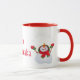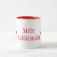 El tazón cerámico de café/té/cacao se muestra con un Navidad festivo de arte de snowman impreso con "Mele Kalikimaka" (Feliz Navidad en idioma hawaiano) en texto. Huella de Snowman a ambos lados de la taza. Personalizar este artículo o compra tal cual.