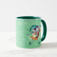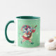 Esta encantadora taza cuenta con un delicioso ilustracion de un gato lúdico vestido como un bufón, que toca alegremente la música en medio de un copo de nieve.
