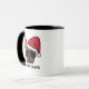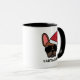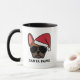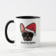 Este lindo tazón de café festivo es un excelente regalo para Navidades para los fanáticos franceses del bulldog. El diseño incluye un bulldog francés de color rojo de la corona con un sombrero de Santa Claus rojo y gafas de sol aviador.