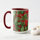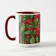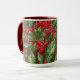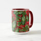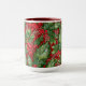 Holly, bayas y un ilustracion ligero de nevadas traen un espíritu festivo de Navidades a tu diversión de vacaciones o regalos en esta taza — o en cualquier época del año. Por el Diseñador de patrones de superficie, L Diane Johnson.