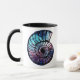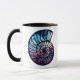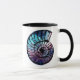 Mug en espiral, concha marina nautilus con una nebulosa azul y violeta con estrellas