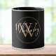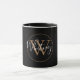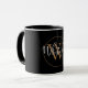 Taza clásica negra con monograma dorado. Puedes personalizar el nombre, monograma y personalizar la fuente y los colores para crear tu propio diseño único. Diseñado por Thisisnotme©