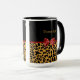 Una taza de moda del modelo del estampado leopardo del negro y del oro con un arco rojo lindo de la cinta envuelto como un presente. Personalice añadiendo su nombre. ¡Perfeccione el presente para la moda y la mujer elegante!