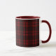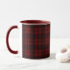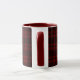Un tazón de café con un patrón original negro sobre rojo oscuro de rayas delgadas en la espalda.