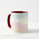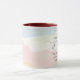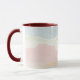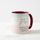 La taza de café "Find Joy in the Journey" representa un diseño de acuarela paisajista abstracto con colores azul pálido, crema y rosa. Presenta una Biblia motivadora Verse Nehemiah 8:10, "La alegría del SEÑOR es tu FUERZA".