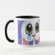 Características del este diseño lindas de la taza un ilustracion caprichoso de un conejo blanco gritador. El conejo tiene una nariz rosada en forma de corazón y el rasgón grande llenado observa. Al lado del conejo son las palabras "que ningún conejito me ama". © Lisa Marie Robinson de las ilustraciones. Todos los derechos reservados.