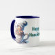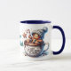 Una Hermosa Mugre Azul De Hanukkah Con Gallina De Pan De Gingerro En Cacao Caliente
