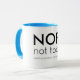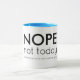 Un tazón blanco, negro en el interior, con tipografía elegante. Tiene un texto negro que dice "NOPE no hoy y mañana no se ve bien".