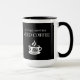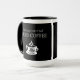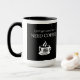 Un diseño gráfico en una taza de café que dice: "No puedo salir de la cama. ¡Necesito café!" Este diseño fue creado por Debbie Quick de Debs Creative Designs.
