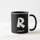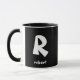 Diseñe su taza personalizada con un monograma y nombre en blanco y negro clásico. Personalizar el fondo y los colores de texto mediante la característica de personalización. Esta plantilla hace un regalo reflexivo para novios, esposos, hijos, papás, novios o mejores hombres, adecuado para ocasiones como cumpleaños, bodas, Navidades o graduaciones.