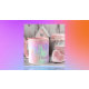Un fondo holográfico de moda con colores pastel de unicornio y arcoiris en rosa, violeta, dorado rosa, verde menta. Decorado con goteo falso purpurina en oro rosa, rosa y morado y dos unicornios. Personalice y sus iniciales de nombre y monograma. Letras rosa y blanco.