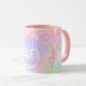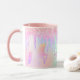 Taza Nombre de monograma holográfico rosa purpurina uni