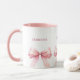 Fondo blanco, texto rosado y arcos Personalizar y agregar su nombre.