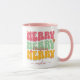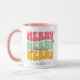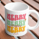 Tipografía retro groovy personalizable guión tazón café. El diseño presenta el texto "Feliz Navidad" en tipografía rosa, verde y amarilla con elementos florales de temática boho. El nombre se puede personalizar fácilmente. Hace el mejor regalo personalizado para usted, sus amigos, familiares e incluso vecinos. Tenemos más de 45 tazas más Navidades en diseño retro, acuarela y tipografía divertida en nuestra colección que definitivamente te encantará. Feliz Navidad!