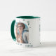 Monograma Foto Trendy Simple Coffee Mug presenta una de tus fotos favoritas con tu nombre personalizado y monograma en un elegante guión verde. Personalice editando el texto en los cuadros de texto proporcionados. Perfecto para cumpleaños, Navidades, Día de la Madre, Día del Padre, hermana, primos, mejores amigos y más. FOTO TIP: céntrate tu foto antes de subir a Zazzle. Diseñado por ©Evco Studio www.zazzle.com/store/evcostudio