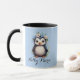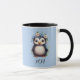 Taza Nombre e iniciales personalizados azules de pingüi