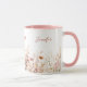 Personalice y agregue su nombre (3) escrito con un guión de estilo con letras a mano. Encantador diseño de la pradera de flores silvestres, con un delicado ilustracion acuático de un prado de flores silvestres, adornado con flores rosas, pajillas beige y hierba. Esta pintoresca escena en un prístino fondo blanco le da un toque de belleza natural y tranquilidad a su cocina.