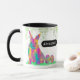La Pascua está aquí y es hora de celebrar nuevos inicios con un divertido conejo de primavera psicodélico de Pascua, huevos y tazas de follaje. Esta colorida taza acuática de Pascua es una excelente manera de difundir la alegría de primavera con sus amigos y familiares. Personalizado color rosa morado verde azulado amarillo verde y negro Tema de Pascua regalo para amigos y familia usando la plantilla personalizar y fácil de usar. Adorables huevos artísticos multicolores patrón ilustraciones únicos en colores intensos psicodélicos abstractos brillantes originales de la artista Catherine Sweetman.