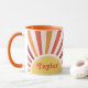 Taza Nombre personalizado de Retro Sunset Sun Rays