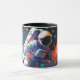 Monograma moderno y colorido del espacio astronauta Nombre personalizado Coffee Mug presenta un astronauta flotando por el espacio exterior con planetas coloridos y suaves y personalizado con su monograma y nombre en tipografía de escritura moderna. Perfecto como regalo para los amantes del espacio, familia y amigos por cumpleaños, Navidades, vacaciones, Día del Padre, hermano, esposo, compañero, mejores amigos, compañeros de trabajo y más. Diseñado por ©Evco Studio www.zazzle.com/store/evcostudio