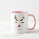 Navidades de nombres personalizados tazas de vacaciones con adorable diseño de cara de reno.
