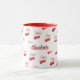 Cerezas rojas con arco rosado como patrón. Personaliza y agrega tu nombre.