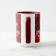 Dos tonalidades con interiores y asideros en rojo y blanco, huella de mosaico rojo con las palabras "Nos levantamos levantando a otros" de Robert Ingersoll. ¡Un bonito recordatorio mientras estás ocupado en la cocina! ¡Un gran regalo para un amigo cristiano!