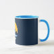 Mug con la nueva bandera de la ciudad de Reno, Nevada; una bandera azul oscura con un sol amarillo y montañas azules en el centro