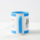 Alrededor del mundo por aire. Una taza de café elegante y única. Imagen de arte de texto del código internacional del aeropuerto JFK, textos de Nueva York, Estados Unidos, coordenadas de ubicación geográfica, y más a dos lados de la taza. El mismo concepto con una silueta de un avión de pasajeros grande en medio de la taza. El personalizable Hans Christian Andersen cita: "Para mover, respirar, volar, flotar, para ganar todo mientras das, para vagar por los caminos de tierras remotas, viajar es vivir" - impreso sobre las cintas azules en la parte superior y en la parte inferior de la taza. Puede cambiar todas las imágenes y puede cambiar o eliminar dos textos de plantilla de forma independiente. Si necesita reubicar imágenes, cambie el tipo de letra y el color de la fuente, el color de las cintas, por favor, utilice el botón "Personalizar". Sé creativo, personalizar, compra el hermoso regalo para los miembros de tu familia, amigos, compañía, o para ti mismo, disfruta, y sé feliz!