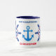Una taza de café elegante e impresionante sobre el tema de viajar alrededor del mundo por mar. Un ancla azul sobre el fondo de un timón azul oscuro o de un volante. Ambos están estilizados como si fueran objetos 3d. Dos textos de plantilla de personalizable de color rojo recorren el timón. Puede cambiarlos o eliminarlos de forma independiente. Son las siguientes: "CUALQUIER TEXTO AQUÍ O ELIMINAR ESTE TEXTO" en la parte superior, "NUEVA YORK * 40°40'04"N 74°02'26"W * ESTADOS UNIDOS" en la parte inferior. El tercer texto de la plantilla "USNYC" es el código del puerto marítimo internacional y está situado en la parte inferior del ancla. Un ancla azul y otros dos textos de plantilla en el centro de la taza. Usted es libre de cambiarlas o eliminarlas como desee. También puede cambiar la imagen. Por favor, utilice el botón "Editar diseño" o "Personalizar" (como puede ser el funda) del color azul para llegar a la "Herramienta de diseño" donde puede cambiar todo, incluyendo el tipo de letra, el color del fondo, etc. Solo sé creativo, personalizar y cómprate uno, disfruta y sé feliz!