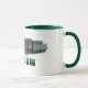 Oggun mug, nombre de Oggun con icónico cowrie en combinación con tren verde.