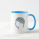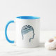 Una única silueta de cabeza con olas oceánicas que suben desde lo alto de la cabeza, simbolizando pensamientos y emociones profundos. Líneas abstractas y limpias con curvas de flujo suave. Equilibrio perfecto entre estética intelectual y emocional.