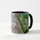 Rezando Mantis Mug - Esta hermosa taza presenta una impresionante fotografía de primer plano de una mantis rezando en su hábitat natural. El vibrante insecto verde se mezcla perfectamente con las hojas circundantes, mostrando sus impresionantes habilidades de camuflaje. La imagen es una verdadera maravilla de la naturaleza, capturando los intrincados detalles de esta fascinante criatura. Es probable que este sea Stagomantis californica (vivimos en la sierra en las estribaciones cerca del Parque Nacional Yosemite). Como todos los mantis, la mantis de California es carnívora, consumiendo prácticamente cualquier otro insecto que perciba como lo suficientemente pequeño como para ser comido, incluidos otros miembros de su propia especie. A menudo, durante o después del apareamiento, la hembra S. californica devora al macho, permitiendo que la hembra tenga suficiente proteína para crear un funda de óvulos. Todo S. californica tiene sensores cerca de sus piernas que permiten a los mantis rezos perder la cabeza y seguir funcionando!! Son criaturas fascinantes... Vi este cuando él (o probablemente ella) seguía cada uno de mis movimientos, girando su cabeza y manteniéndome sus enormes ojos sobre mí mientras me movía delante, y luego hacia atrás para obtener una buena foto.