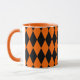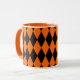 Taza Orange Black Harlequin Diamonds Checkers Design