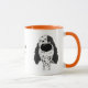 La taza del organismo inglés con una vista delantera de la nariz grande de un organismo inglés en un lado de la taza y su extremo posterior adorable apoyan la opinión sobre el otro lado de la taza. Los colores y el texto del fondo pueden ser cambiados. Apenas haga clic en el personalizar él botón.