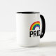 Este diseño presenta la palabra orgullo bajo un arcoiris colorido.