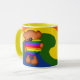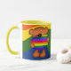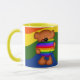 Sillas de café / tazas / gafas / gafas / tazas de viaje / tazas de un pequeño oso de peluche sosteniendo un corazón de orgullo arcoiris gigante