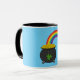 Un ilustracion personalizado de la olla de oro al final del arco iris con hoja verde de shamrock para la celebración del Día de San Patricio. Este caldero lleno de diseño de monedas de oro es una idea de regalo para los amantes de la temática irlandesa y del tesoro irlandés. ¡Coger el leprechaun y conseguir su oro!