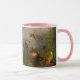 Esta impresionante jarra, mostrada aquí con un mango rosa y el interior, presenta una versión en forma de páintero del asombroso trabajo de la selva amazónica de Martin Johnson Heade. Esta obra de arte incluye el cierre de una orquídea cattelya rosa exótica con 3 colibríes brasileños. Se aplicó un filtro simulado de foto/acuarela sobre la imagen para sacar a la luz su luminosidad. Este hermoso trabajo de 1871 es de dominio público y está disponible en Flickr commons por Swallowtail Garden Seeds. Esta hermosa jarra vintage sería una forma hermosa de tomar el té de la mañana o de la tarde. La taza está disponible en varios estilos, incluyendo un mango blanco.