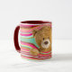 Oso de peluche marrón con rayas horizontales rojas y verdes.