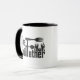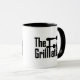 Esta taza de cerámica se muestra con un estampado de PADRE A LA PARRILLA.